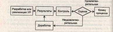 Контроль по результатам осуществляется на базе организационной, технической, экономической, финансовой и другой документации. Оценивается отклонение фактического результата от планового, зафиксированного в соответствующих документах. Например, контроль сроков, проработанности, согласованности с заинтересованными сторонами элементов бизнес-плана. Данный вариант контроля эффективен для циклических процессов с малым временем цикла, например, несколько часов или дней, при небольшой стоимости разработки или реализации УР. Путем корректировок УР можно постепенно, «цикл за циклом» совершенствовать УР, анализируя предыдущий результат разработки или реализации (рис. 9.1).