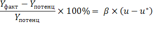 где Y фактический объем производства; Y * потенциальный ВВП; и фактический уровень безработицы; и* естественный уровень безработицы; эмпирический коэффициент чувствительности ВВП к динамике циклической безработицы.