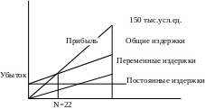 Если введенная в эксплуатацию станции мобильной связи будет емкостью 22 абонента то компания не будет иметь убытка, но и не будет иметь прибыли. Построим график, на котором наглядно видна точка безубыточности.