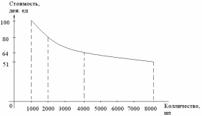 Таким образом, предприятие, достигающее удвоения объемов производства и сбыта своей продукции, получает дополнительные преимущества в конкуренции на основе относительной экономии издержек при том же качестве товаров.
