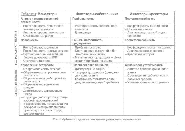 Такое управление финансами отдельных хозяйствующих субъектов выделилось в странах с развитой рыночной экономикой в начале XX в. в специальную область знаний, которая получила название «Финансовый менеджмент». Именно финансовый менеджмент отвечает на вопросы: сколько требуется денежных средств, где их изыскать, как управлять ими рационально с высокой отдачей. Субъекты и целевые показатели финансового менеджмента наглядно представлены в таблице, расположенной в приложении к данной работе.