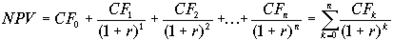 В данном случае, поскольку в проекте денежные потоки неравномерны, я думаю, можно воспользоваться следующей моделью расчета показателя NPV (чистая стоимость денежных потоков или экономическая стоимость предприятия)
