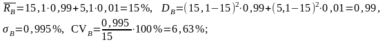 Так как наименьшее значение коэффициента вариации имеем для акции В (6,63%), то и вложения в эту акцию наиболее предпочтительны, тем более, что и σВ = rВ = 0,995% наименьшее [6, стр. 107].