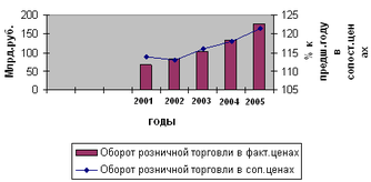 Таблица 2.1 - Динамика оборота розничной торговли за 2001-2005гг