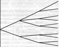 Дерево вероятностей показывает, что если в периоде 1 результатом будет верхняя ветвь, то она приведет в периоде 2 к другому множеству возможных результатов, чем это было бы, если бы результат в периоде 1 выражался нижней ветвью. Аналогичная картина наблюдается и при переходе от периода времени 2 к периоду 3. Поэтому в момент временного периода 0 дерево вероятностей представляет наилучшую оценку того результата, который, вероятно, будет иметь место в будущем, в зависимости от того, что происходило прежде. Каждой ветви сопоставлена вероятность получения соответствующего результата.