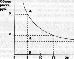 Приведенная графически зависимость показывает, что расширение объектов вложения капитала, т. е. рассеивания риска, от 5 до 15 позволяет легко и значительно уменьшить объем риска с величины ОР1 до величины ОР2.