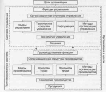 Рис. 1. Состав проектируемых элементов производственной системы и системы управления организацией