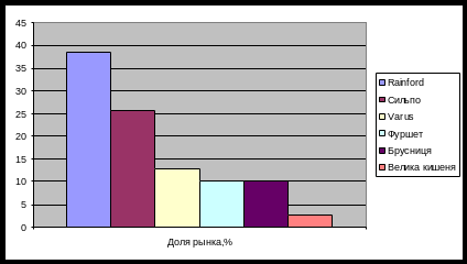 Для всех сегментов рынка конкурентная ситуация складывается примерно одинаково, на рынке действуют одни и те же производители данной продукции в основном это отделы кулинарий при магазинах торговых сетей, которые занимают большую или меньшую долю в разных сегментах.
