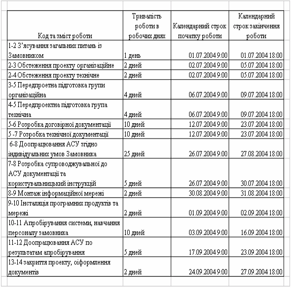 | | Закриття проекту та оформлення відповідної документації | Інженер-програміст І категорії Директор | 2 |