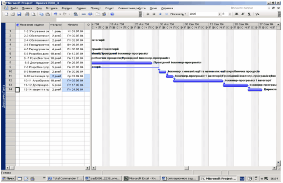 Рис. 2.8. Діаграма Ганта індивідуалізованого проекту (Фрагмент1)