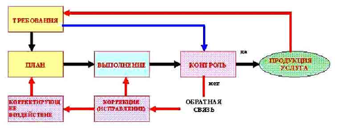 Затем весь цикл повторяется сначала. Каждый из перечисленных этапов распадается на множество процессов, операций и действий исполнителей. При этом процессы и действия с точки зрения процесса управления качеством имеют четко обозначенные цели, критерии контроля (стандарты), каналы обратной связи, процедуры анализа и методы воздействия. Реальный процесс и система управления качеством представляют собой сложную совокупность взаимосвязанных контуров управления.