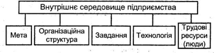 Внутрішнє середовище кожної організації формується під впливом перемінних, що роблять безпосередній вплив на процес перетворень (виробництва продукції, послуг).