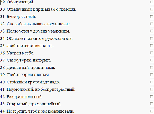 (стабильность, трудолюбие, настойчивость, лояльность, терпимость, уверенность в себе, способность повести за собой)