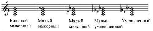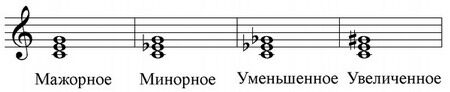 Итак, Мажорные трезвучия строятся на I, IV, V ступенях Минорные - на II, III, VI ступенях, а также на IV в гармоническом мажоре Уменьшенные трезвучия - на VII ступени и на II в гармоническом мажоре Увеличенное трезвучие строится на VI пониженной в гармоническом мажоре