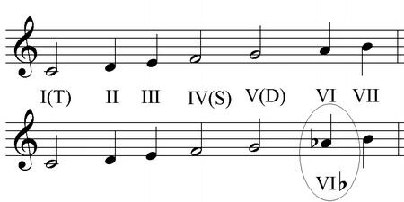 Они отличаются только одной ступенью - VI. Поэтому все аккорды, в которых будет встречаться VI ступень - будут иметь два варианта: натуральный и гармонический.