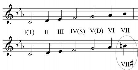 Для начала нужно построить гаммы До-мажора натурального и До-мажора гармонического: