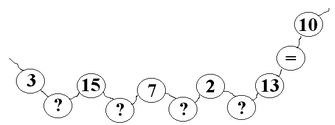 На планшете написаны примеры. Каждый участник командыподбегает, решает один пример и передает эстафету следующему. Кто быстро и правильно решит весь пример?