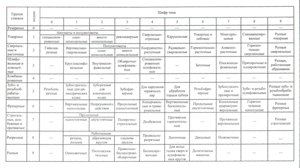 В зависимости от характера выполняемых работ и применяемого режущего инструмента станки подразделяют на группы и типы (табл. 1).