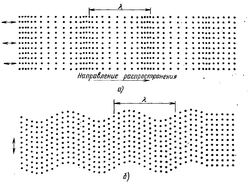 Рис. 1 - Схематическое изображение продольных (а) и поперечных (б) волн