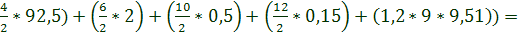 ) = 0,0476 (185+7+3,3+3,25+1,2) = 9,51 м3