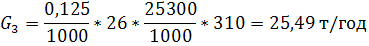 Суммарное количество белья G, т/год, стираемого в прачечной, составляет: