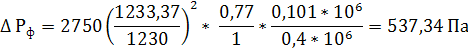 ∆ Pгр – потери давления в чистом фильтре, Па; определяем в зависимости от пропускной способности при P0 = 0,101 МПа и сгр = 1 кг/м3;