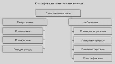 Синтетические волокна получают из синтетических высокомолекулярных соединений. В зависимости от химического строения данные волокна разделяют на две группы: гетероцепные и карбоцепные.