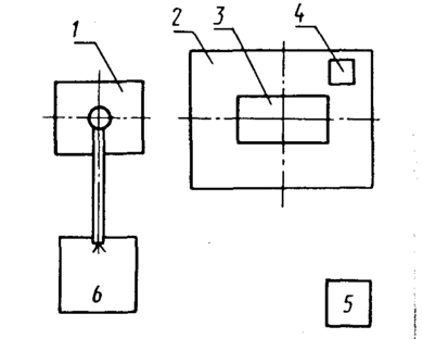 Рис. 3 - ГПМ холодной штамповки: 1 - ПР; 2 - пресс; 3 - штамп; 4 - система автоматического удаления штампуемой детали; 5 - система управления (СУ) модулем; б - по дающее устройство шиберного типа