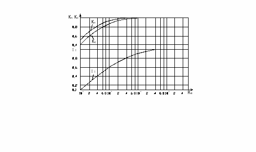 - коэффициенты пересчета характеристик насоса с воды на вязкие жидкости. Принимаются по рисунку 2.2 в зависимости от числа Рейнольдса, которое определяется по формуле: