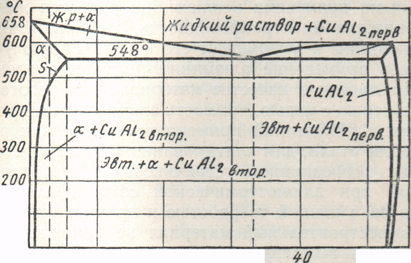 и старению .Из диаграммы состояния А1 — Си следует, что наибольшая растворимость меди в алюминии наблюдается при 548°, когда она составляет