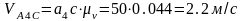 | VA4C,м/с | 0 | 1.3 | 2.2 | 2.7 | 0.6 | 1.5 | 0 | 1.3 | 2.5 |