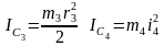 Блок 3 – сплошной однородный цилиндр, для катка 4 известен радиус инерции, поэтому моменты инерции этих тел относительно осей, проходящих через их центры масс и перпендикулярных плоскости чертежа, будут вычисляться: