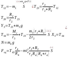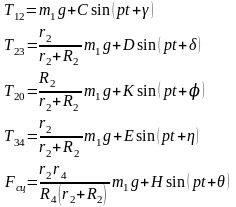 Функции сил натяжений нитей и сцепления катка представим в виде:
