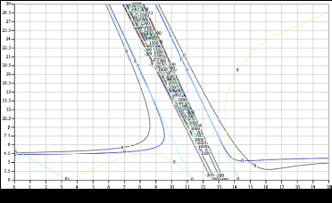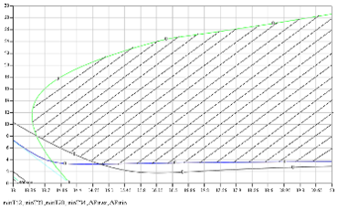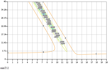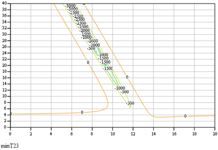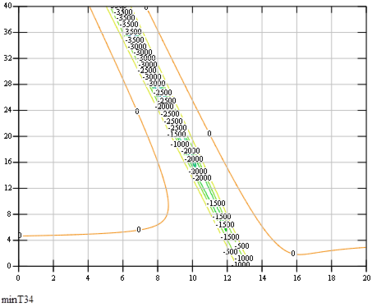 Чтобы определить области допустимых значений для масс груза 1 и катка 4, нарисуем линии уровней всех функций на одном рисунке: