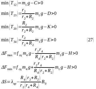 Подставляя вместо коэффициентов k и n их выражения, найдем, из уравнения ΔS = 0, предельные значения массы груза 1