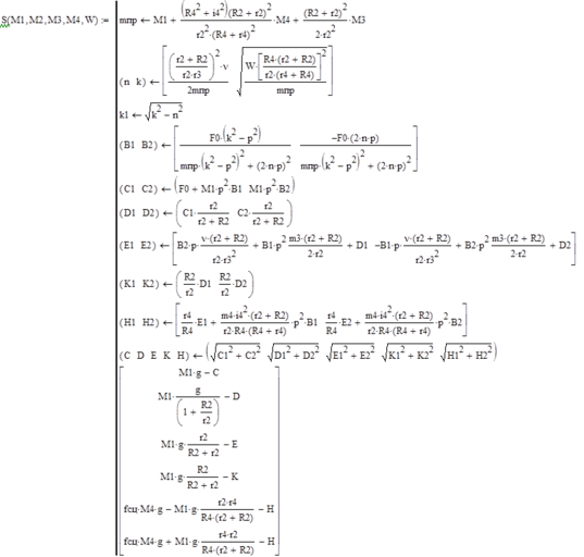 представим в виде процедуры S(M1,M3,M4,W) пакета Mathcad. Выражение для функции ΔS(M1,M3,M4,W), в силу несложности ее преобразования, получим позже.
