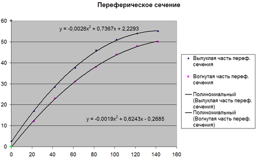 В результате получим диаграммы с уравнениями аппроксимации для периферического сечения: