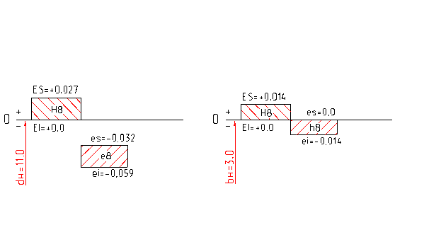 3). Находим из таблицы рекомендуемые поля допусков и посадки для размеров шлицевого соединения: