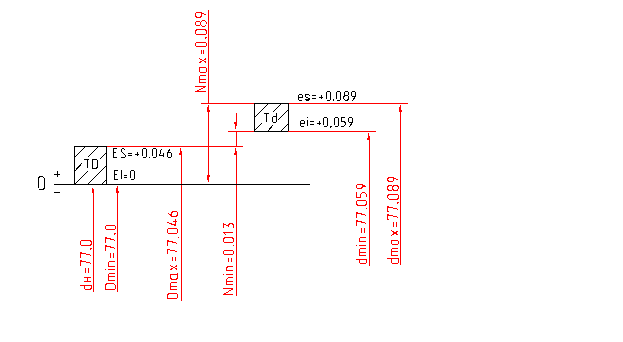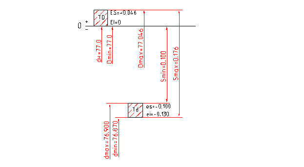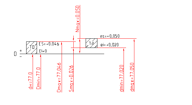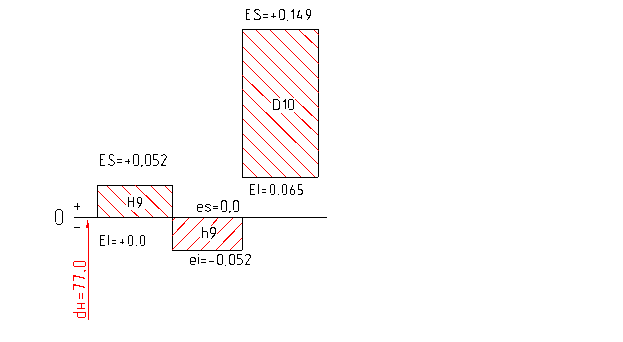 Дано: Ø77 , для номинального размера построить расположение полей допусков трех видов соединений.
