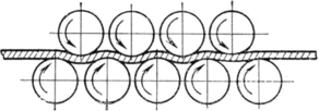 Процесс правки заключается в однократном или многократном пластическом изгибе искривленных участков полосы, каждый раз в обратном направлении.