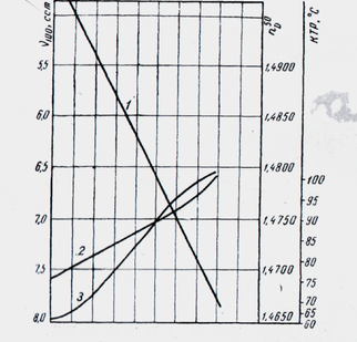 При селективному очищенні масел є певна залежність КТР, показника заломлення і в'язкості при 100° від глибини очищення, що видно з мал. Показник заломлення є до деякої міри показником хімічного складу олії. Чим він нижчий, тим менше в олії міститься важких ароматичних вуглеводнів і тим вище якість олії. Велике значення має ступінь обводненості, що застосовується очищення фенолу. Чим більше у фенолі води, тим вище КТР за інших рівних умов.