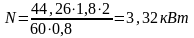 N = 388⋅1500/9740⋅1,2 = 49,8 кВт.