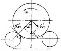 Рис.3.2 Схема взаимодействия колеса и роликов стенда проверки мощности.