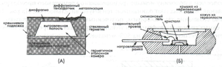 Рис. 5. Конструкция ПМС датчика для измерения низкого давления: А — схема сборки датчика. Б — устройство датчика