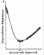 Рисунок 3. Прочность кристаллов в зависимости от искажений решетки (числа дефектов):