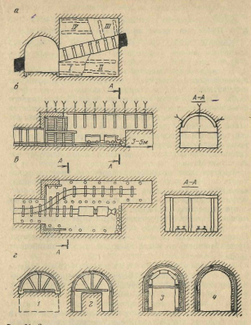 Выбор схемы проведения камер зависит от устойчивости пород и размеров их поперечного сечения.