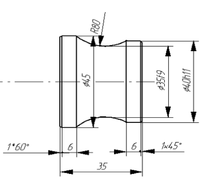 Для этого вычерчиваем заданную деталь, распологая ее торцом большего диаметра слева, ближе к шпинделю. На чертеже находим дополнительные режущие кромки резца.
