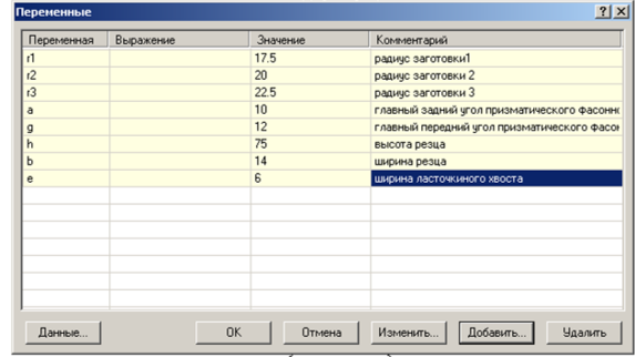 Рис.6 Окно переменных в задаче параметрического моделирования