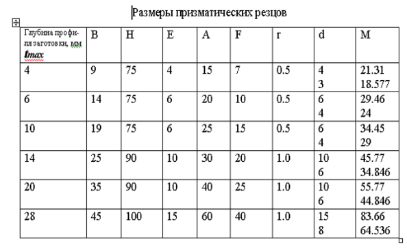 Рис 4. Размеры призматических резцов
