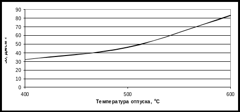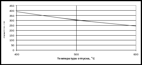 Рисунок 2.3 – График зависимости твёрдости (НВ) от температуры отпуска.